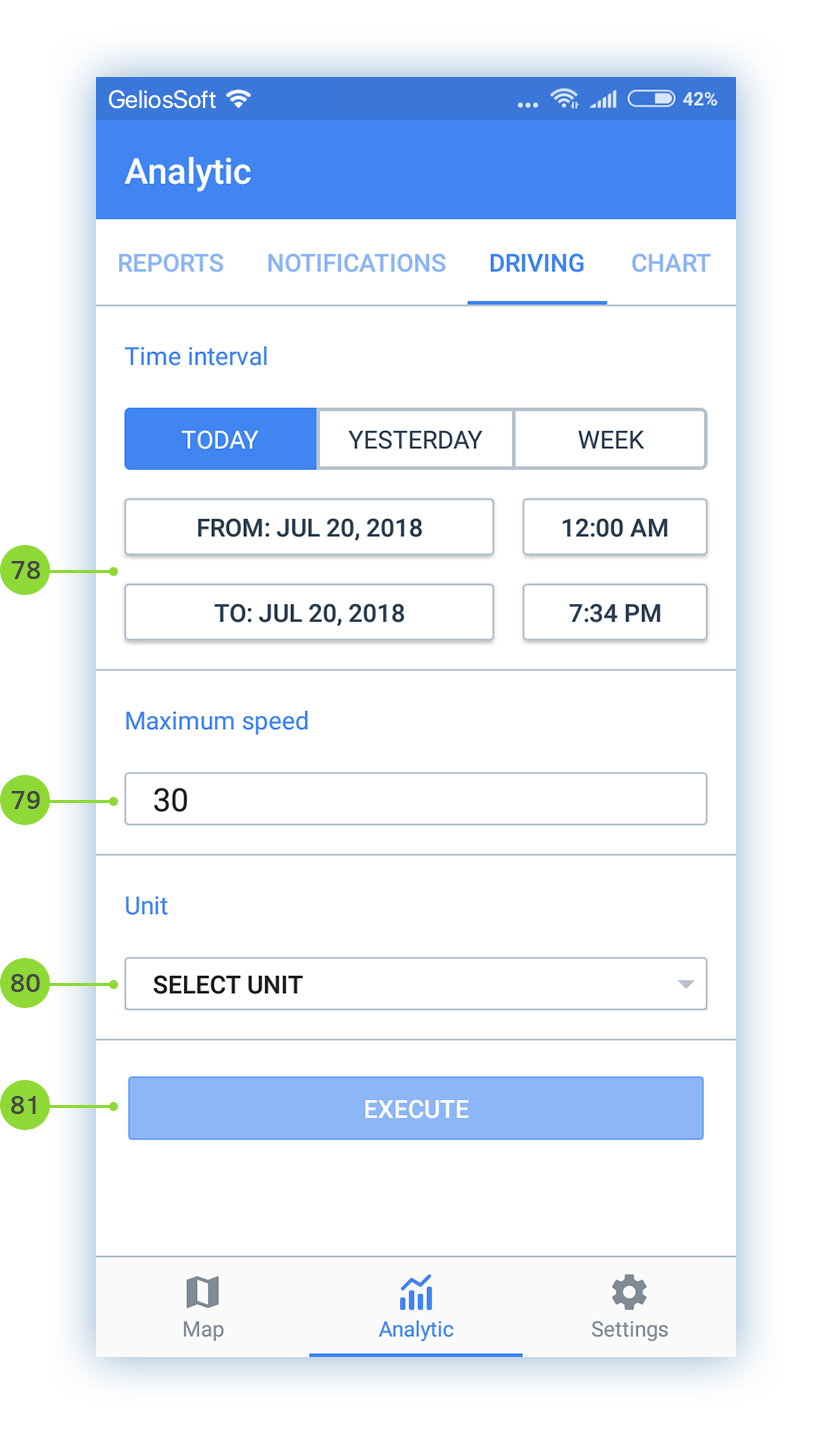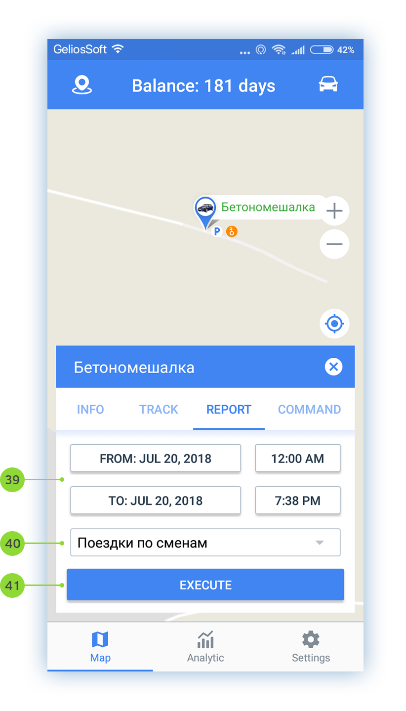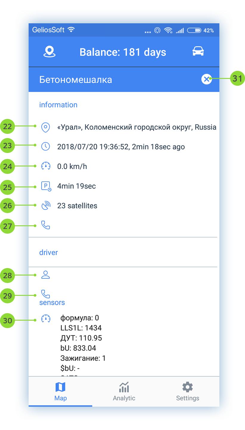 The app is conditionally divided into 3 screens: Map, Analytics, Settings. Please, first of all, read the settings of the app for more convenient using.